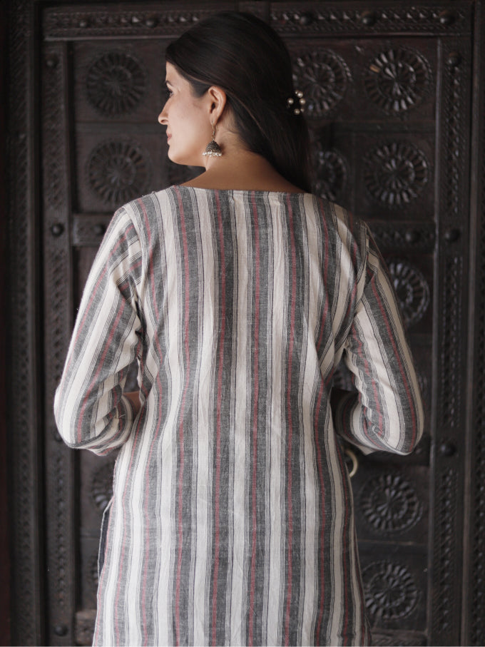 kurti adorned with intricate handwork detailing on the neckline – a true masterpiece that embodies elegance and craftsmanship.