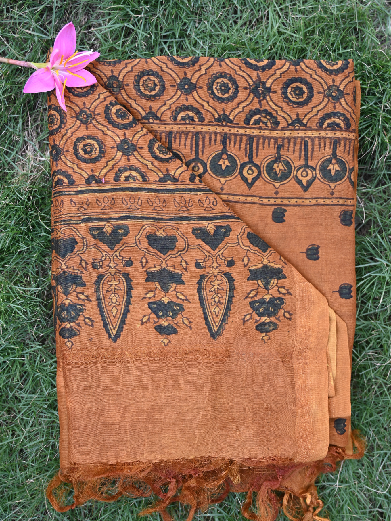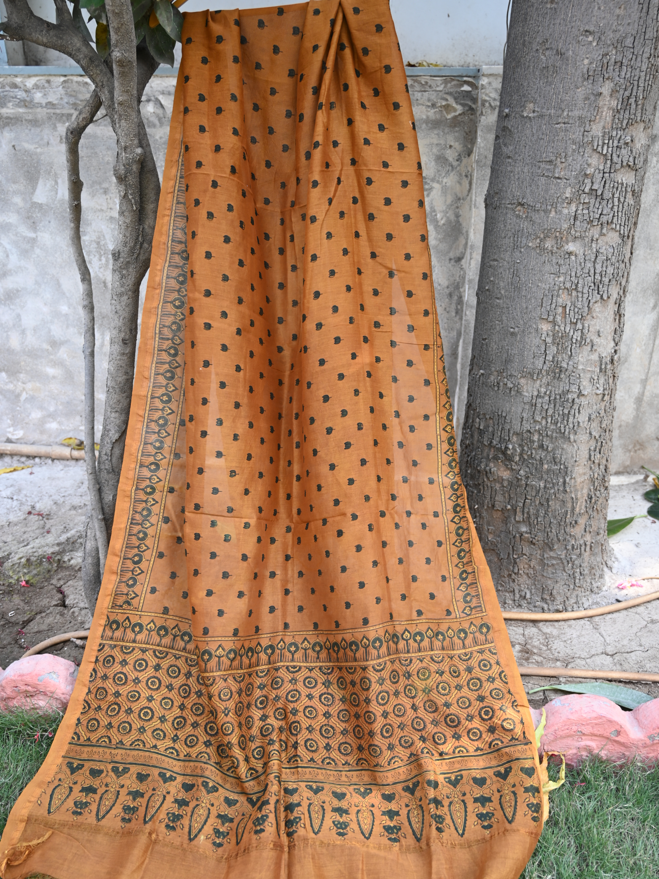 Add a touch of elegance with our Ajrakh Chanderi Silk Dupatta in a radiant yellow hue. Crafted with intricate Ajrakh prints on luxurious silk, it’s perfect for festive occasions and timeless style.