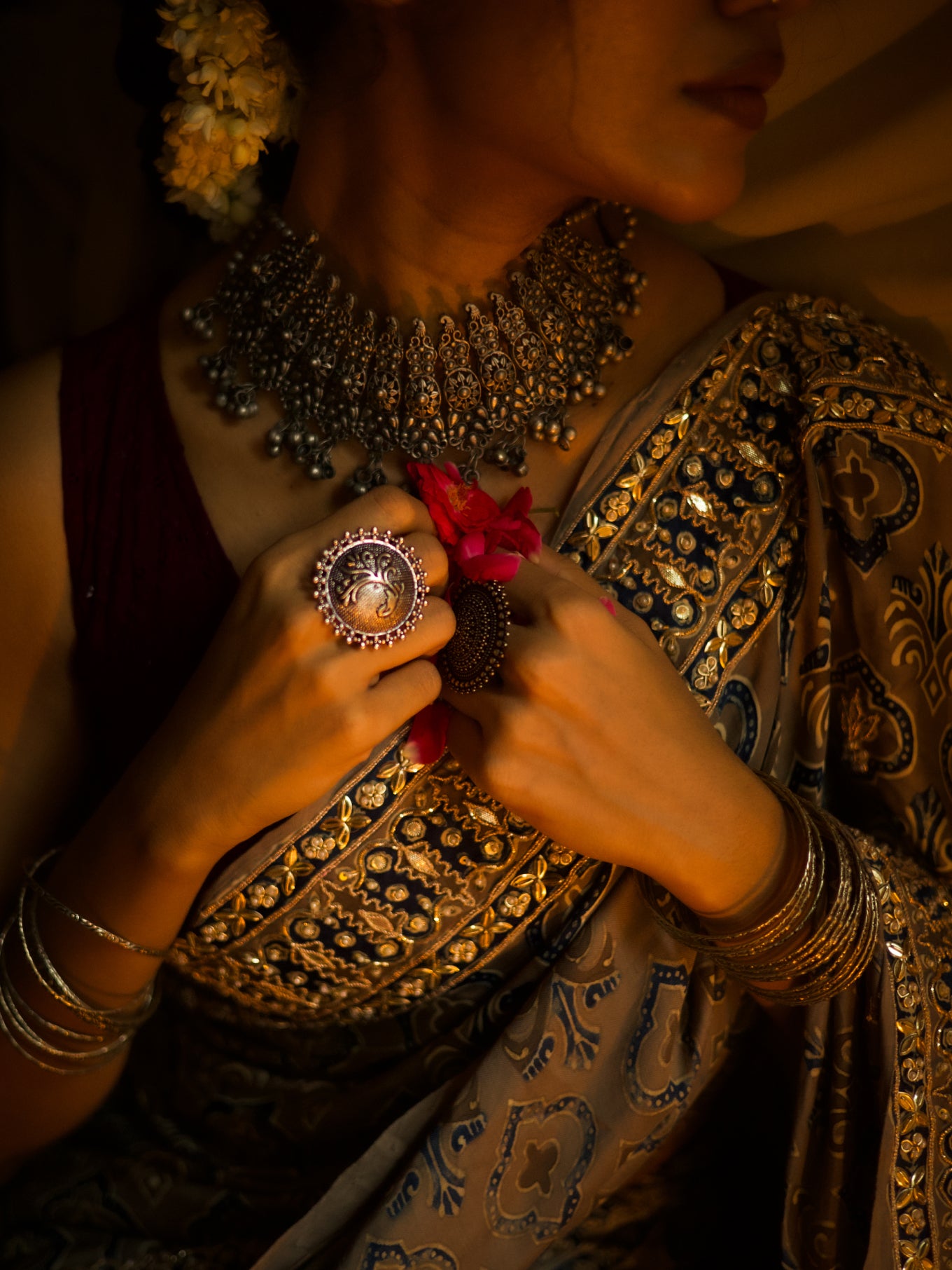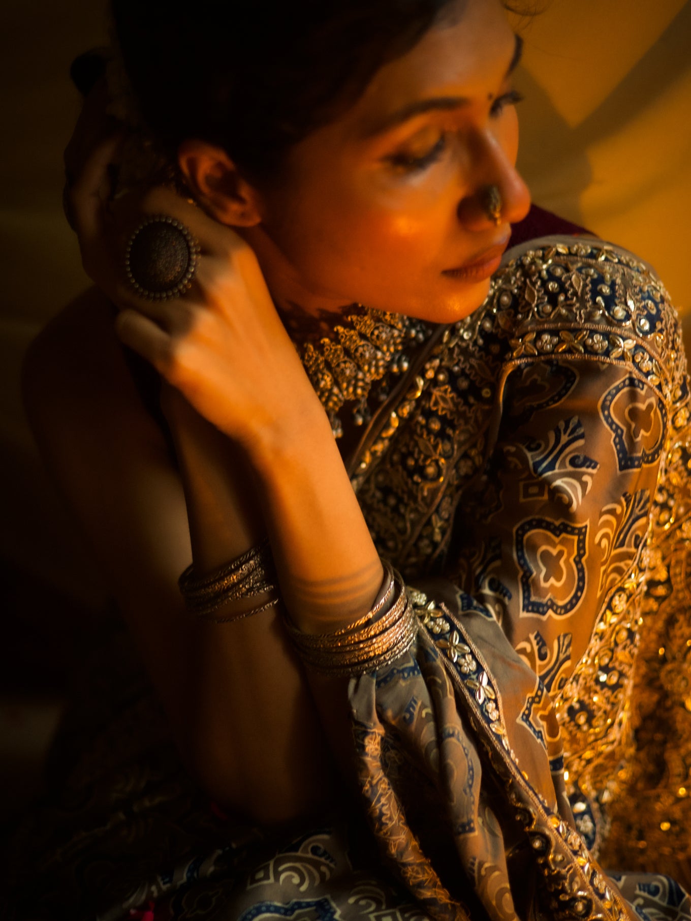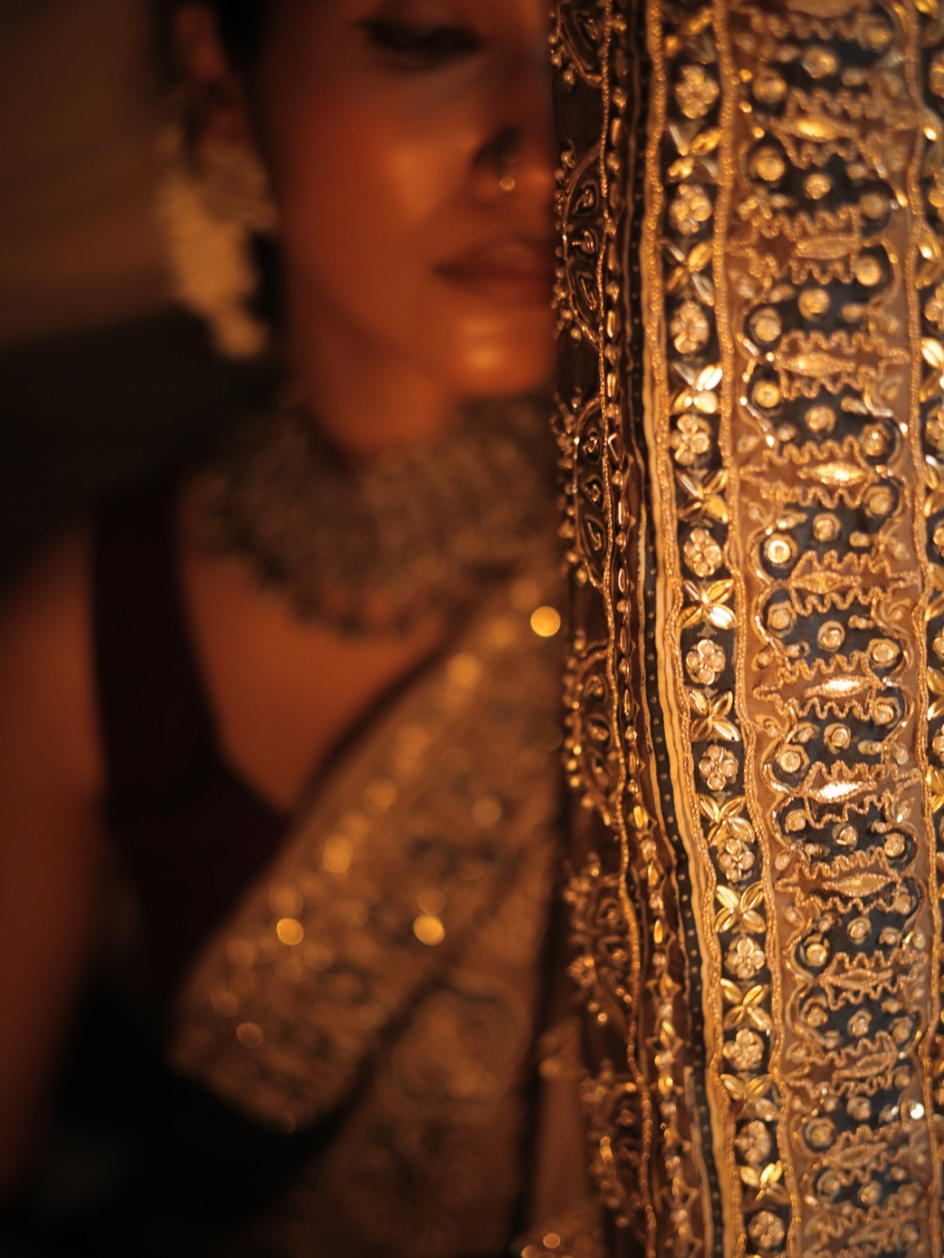 Introducing our exquisite Ajrakh Silk Saree, adorned with intricate Zardozi and delicate pearl handwork—an elegant masterpiece crafted for the wedding season. This saree combines the timeless charm of Ajrakh printing with the opulence of traditional Zardozi embroidery, enhanced by meticulously placed pearls that add a touch of luxury and sophistication. Each piece is thoughtfully designed to radiate grace, making it the perfect choice for brides and wedding guests alike. Embrace the allure of heritage craftsmanship with a saree that celebrates artistry and elegance.