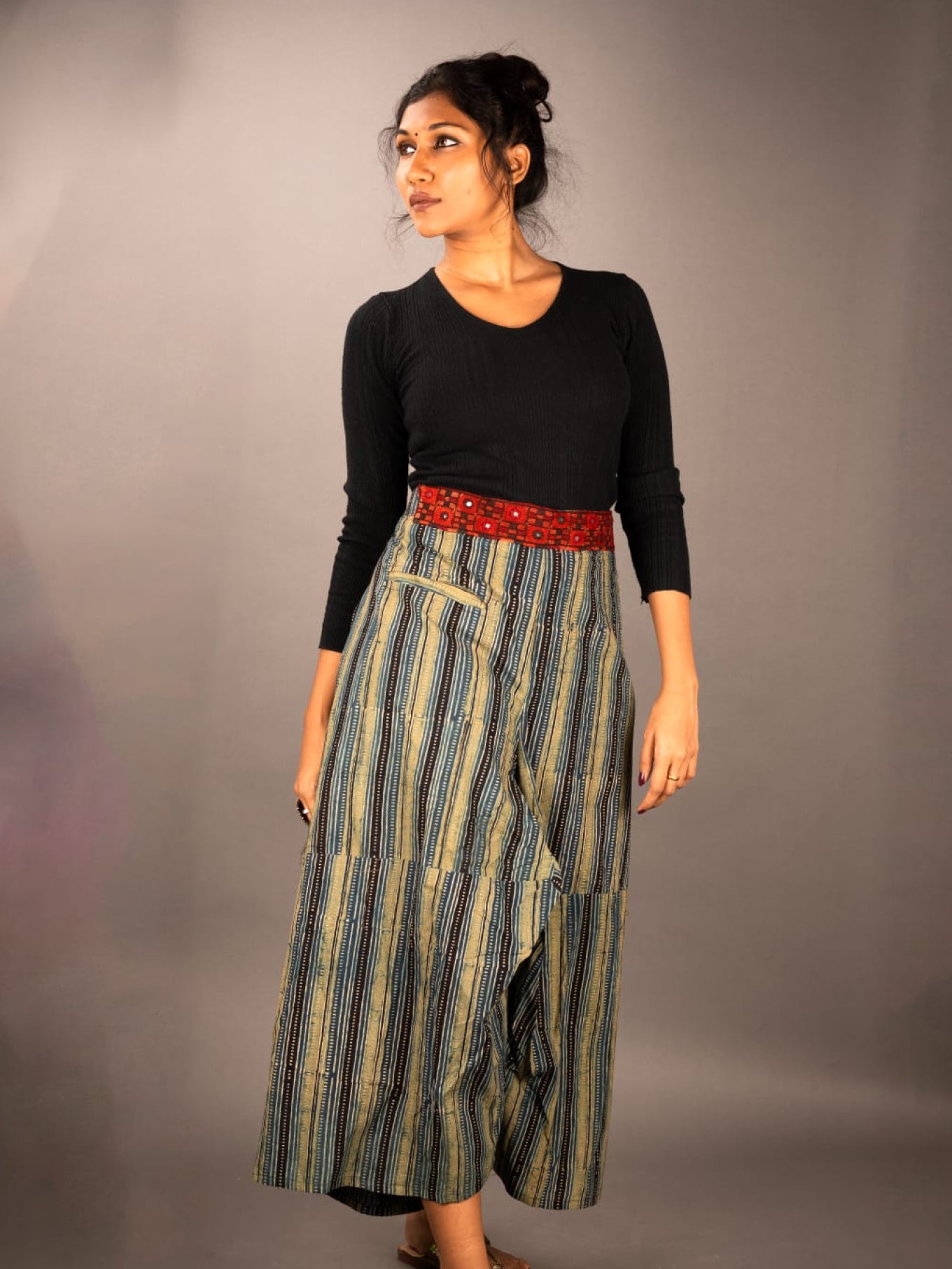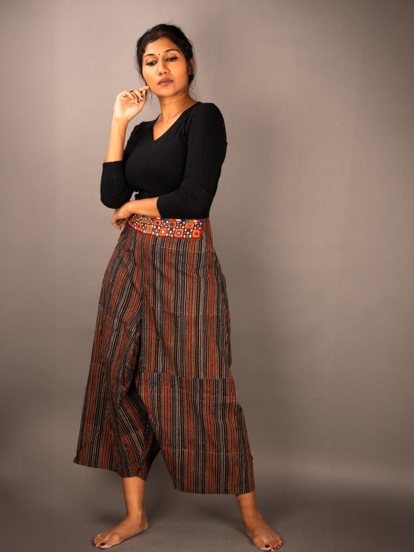 Step up your fashion game with our Ajrakh Stripe Pants, featuring a stunning embroidered belt. Tradition meets trend in this perfect fusion!