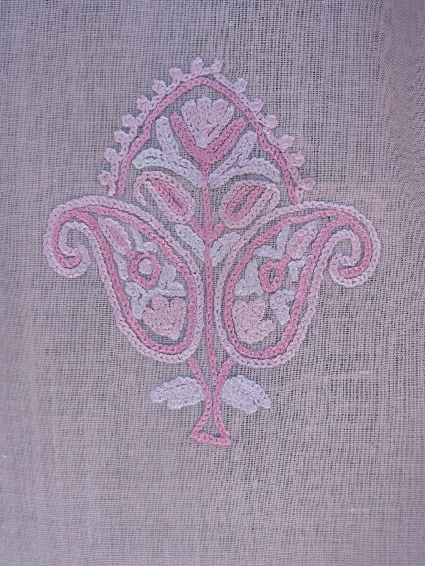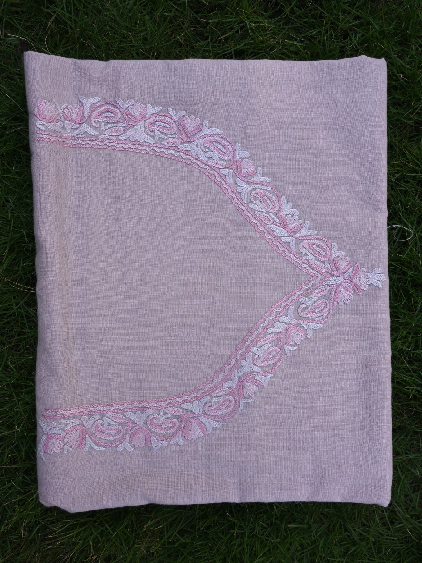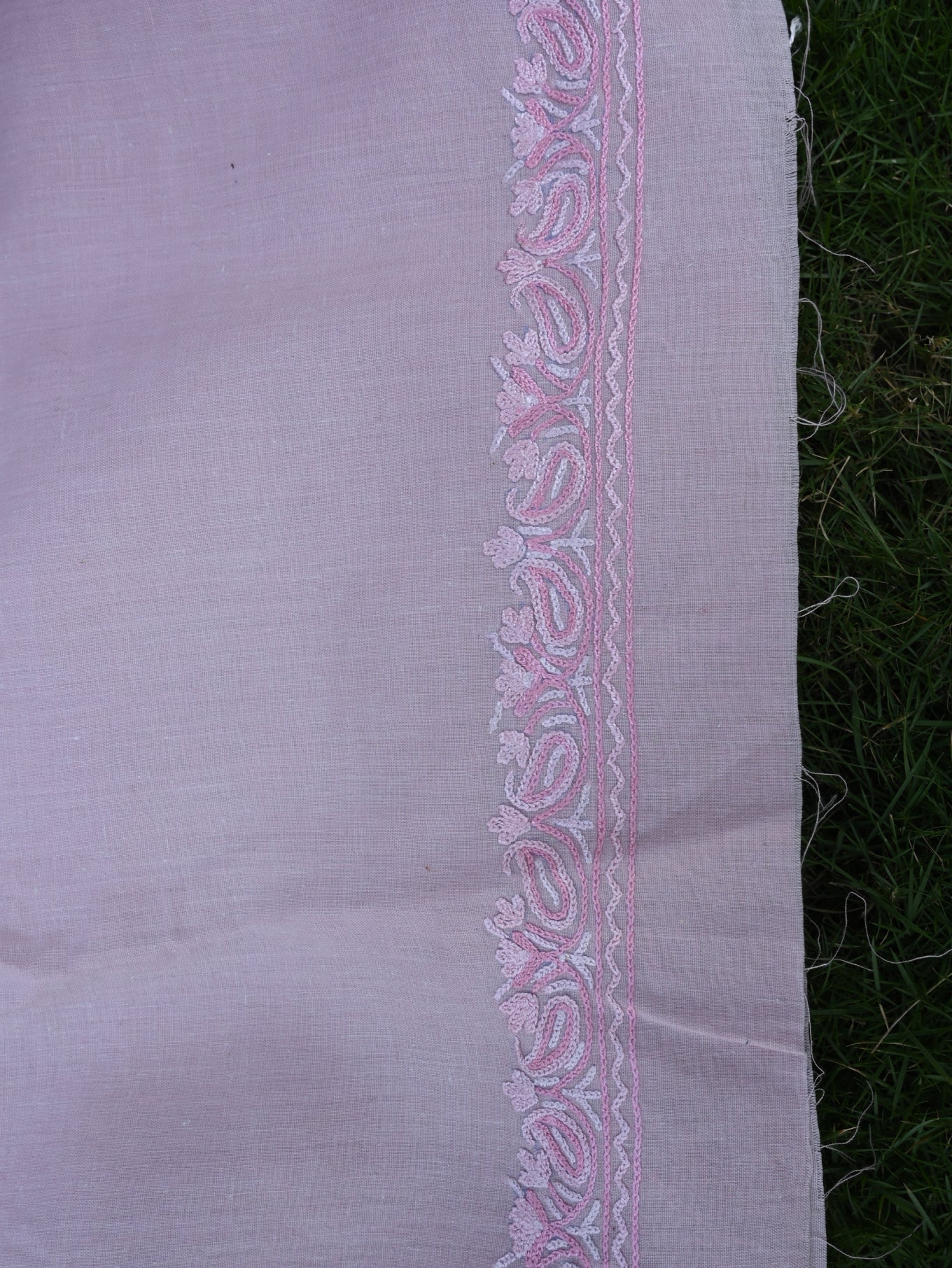 Grace meets tradition with this baby pink khadi fabric, adorned with exquisite Kashmiri hand embroidery on the neck, sleeves, and back. The breathable, eco-friendly khadi ensures comfort, while the intricate embroidery adds timeless elegance. Perfect for creating stunning ethnic or fusion outfits!