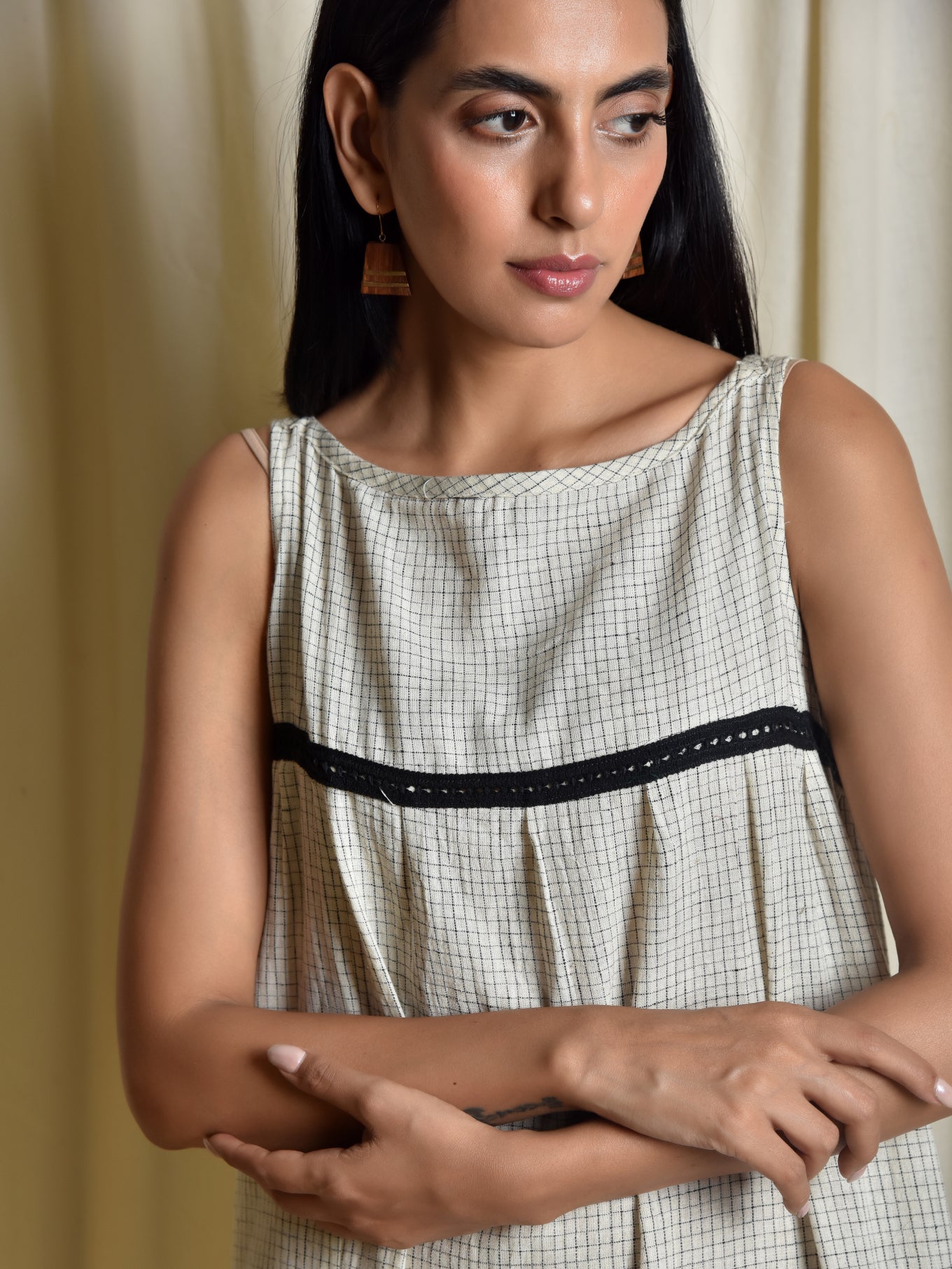 Embrace timeless elegance with the White chex dress, crafted from 100% Kala cotton. Featuring a breezy silhouette with checkered patterns and black accents, this sustainable, handwoven piece offers unmatched comfort and style. Perfect for casual outings or summer evenings, it’s where tradition meets modern charm.