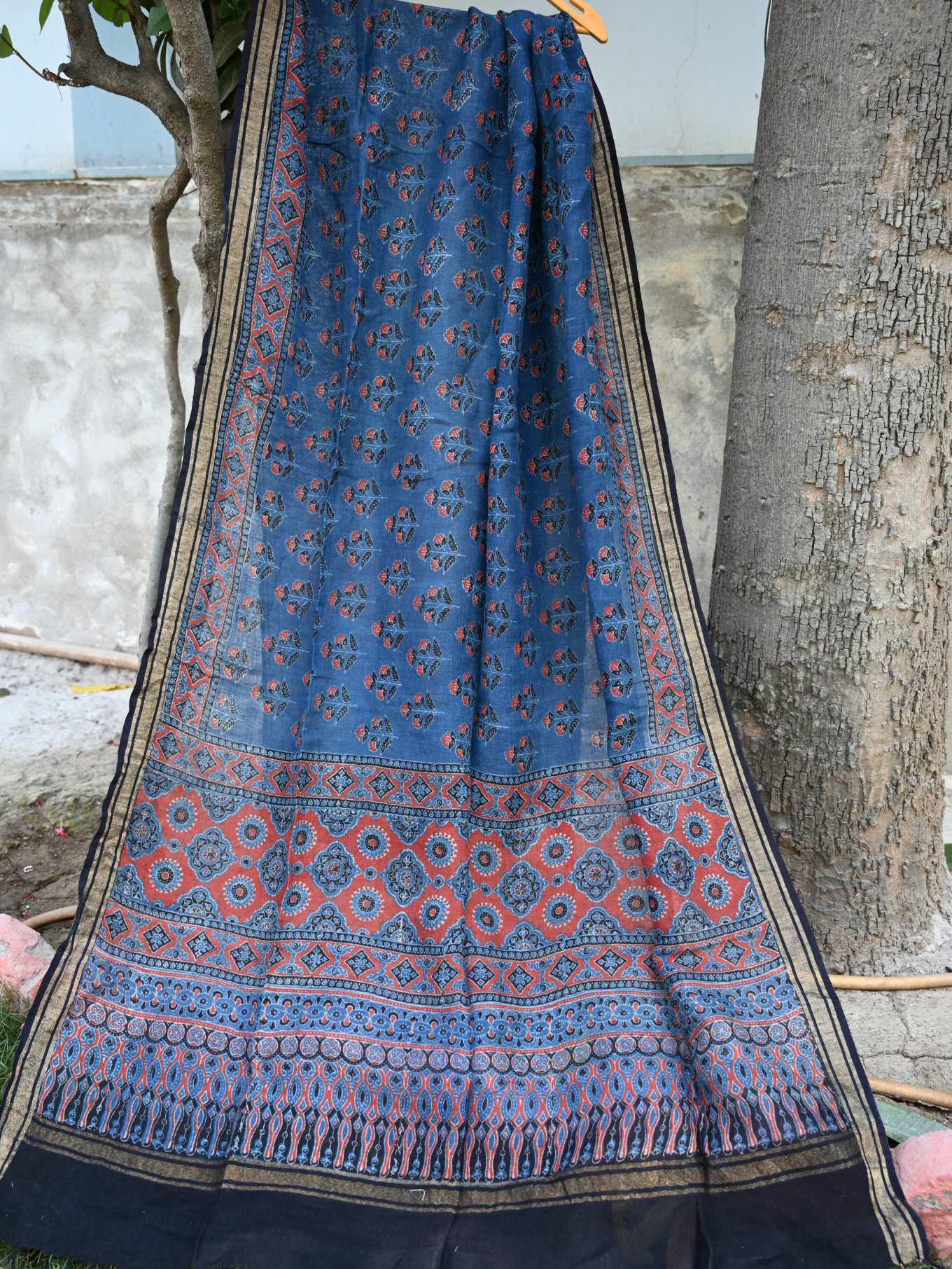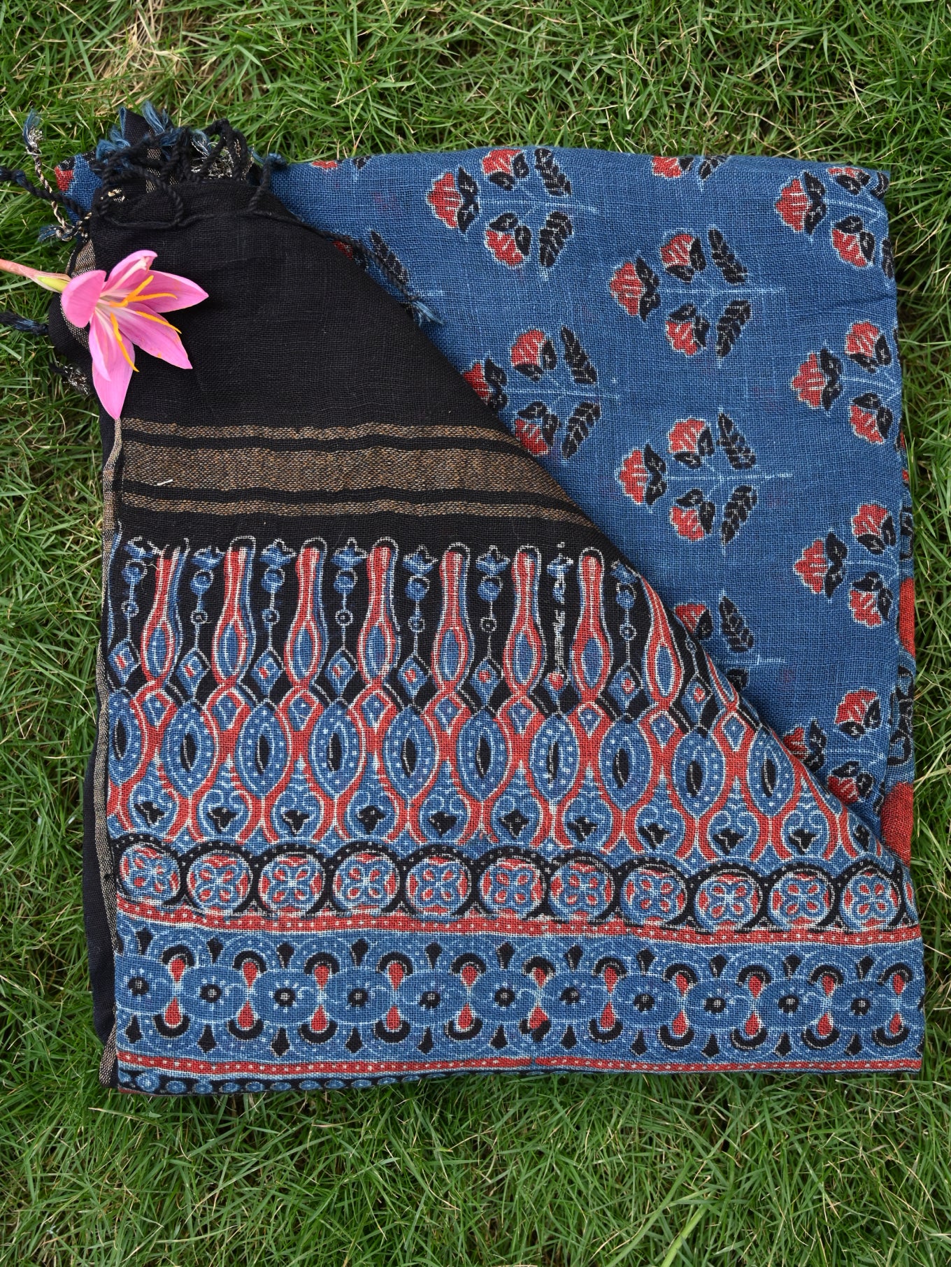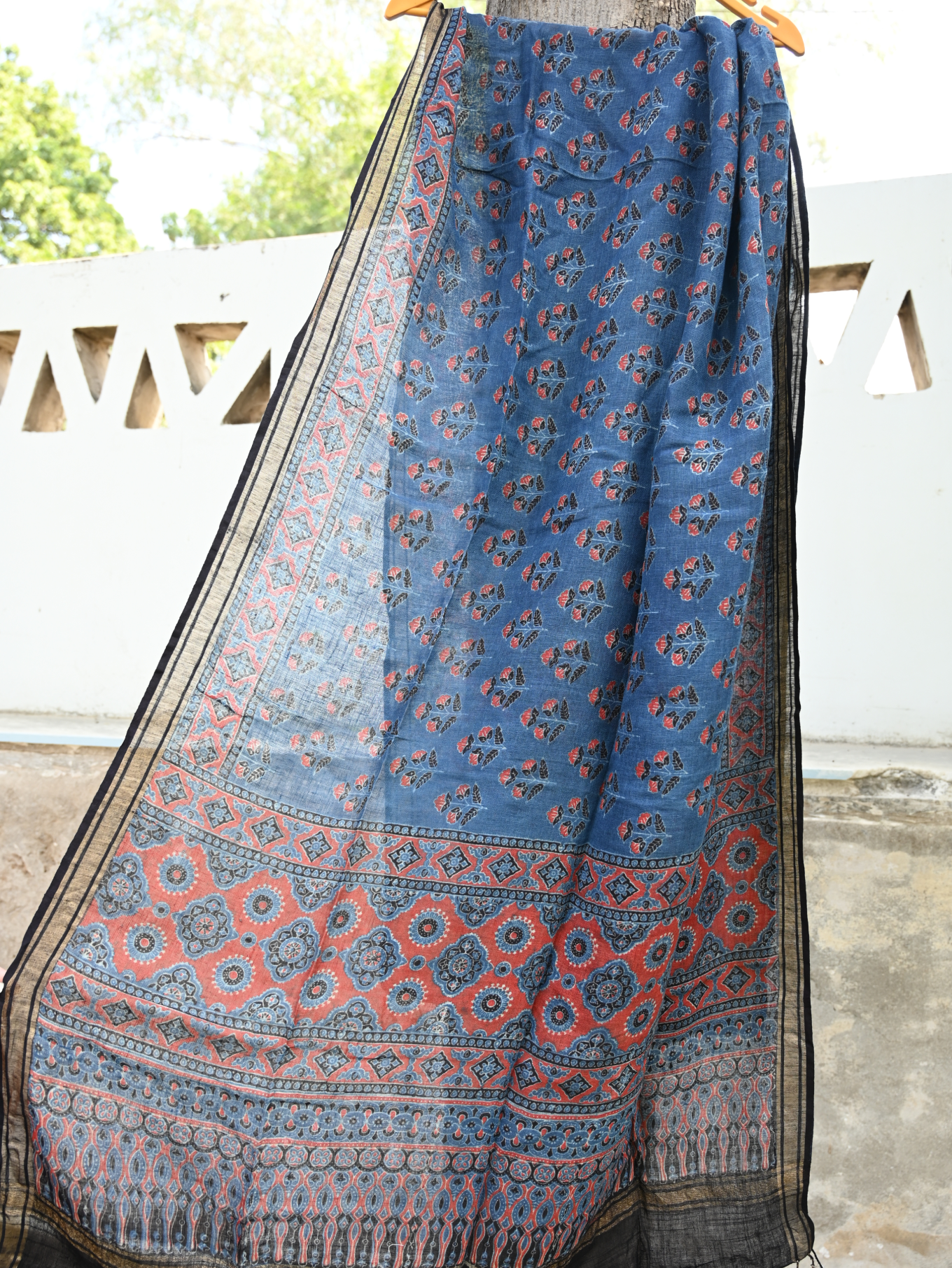 Add a touch of elegance to your ensemble with our Ajrakh Print Linen Dupatta in a soothing blue color. Featuring traditional Ajrakh patterns on lightweight linen, this dupatta offers both comfort and timeless style, perfect for any occasion.