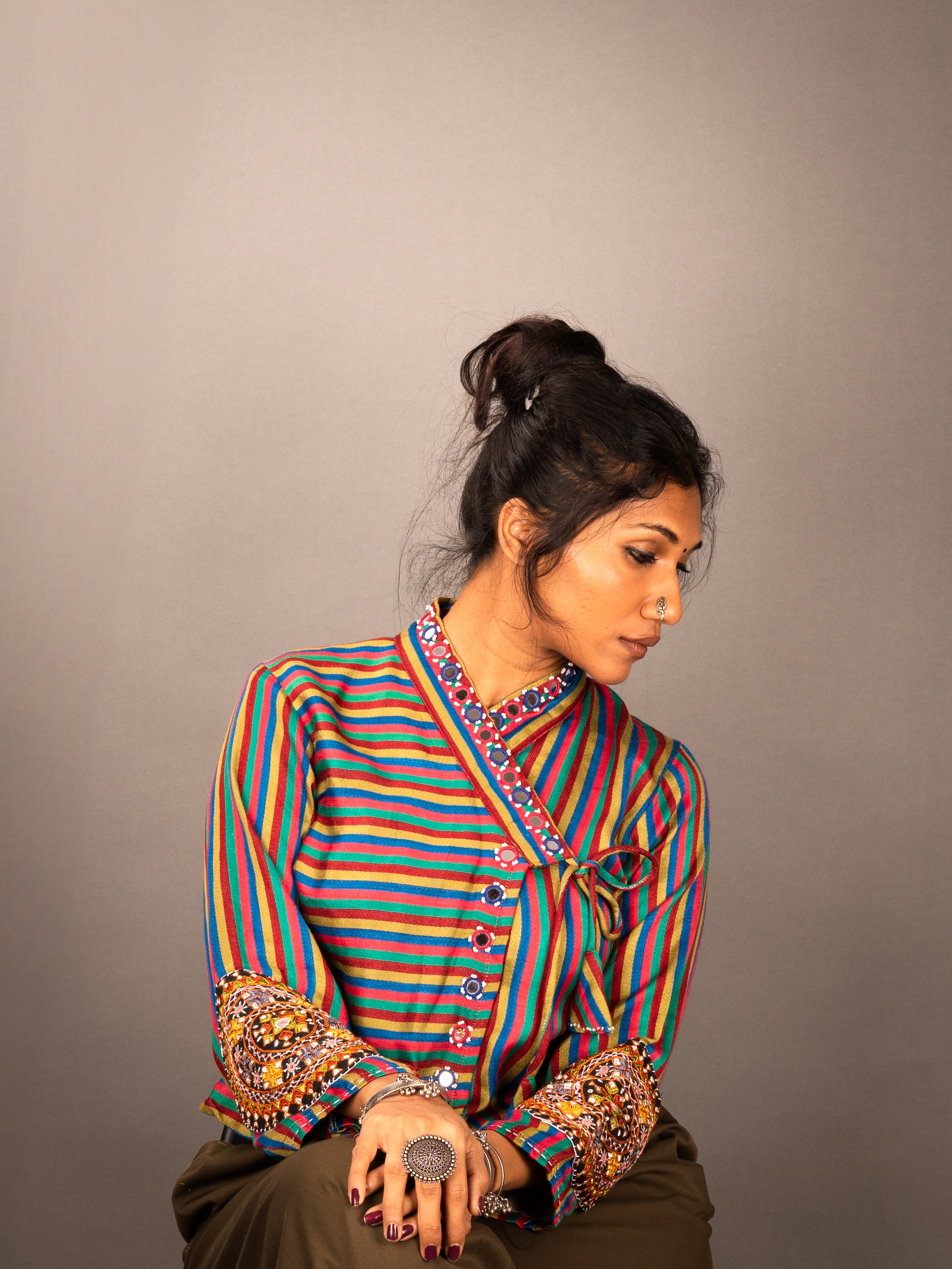 Handwoven mashru silk cotton fabric kediya, kediya is traditional wear of male in kutch region but we modified into our female attire.