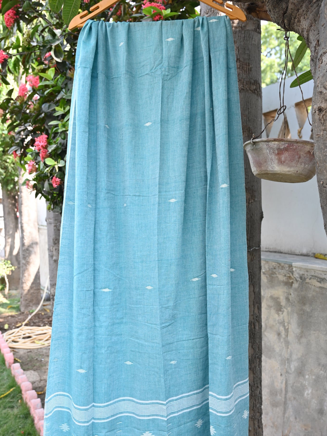 Grace your look with our elegant sea blue Jamdani dupatta. Its delicate handwoven design and soft cotton fabric make it a perfect blend of style and comfort for any occasion!