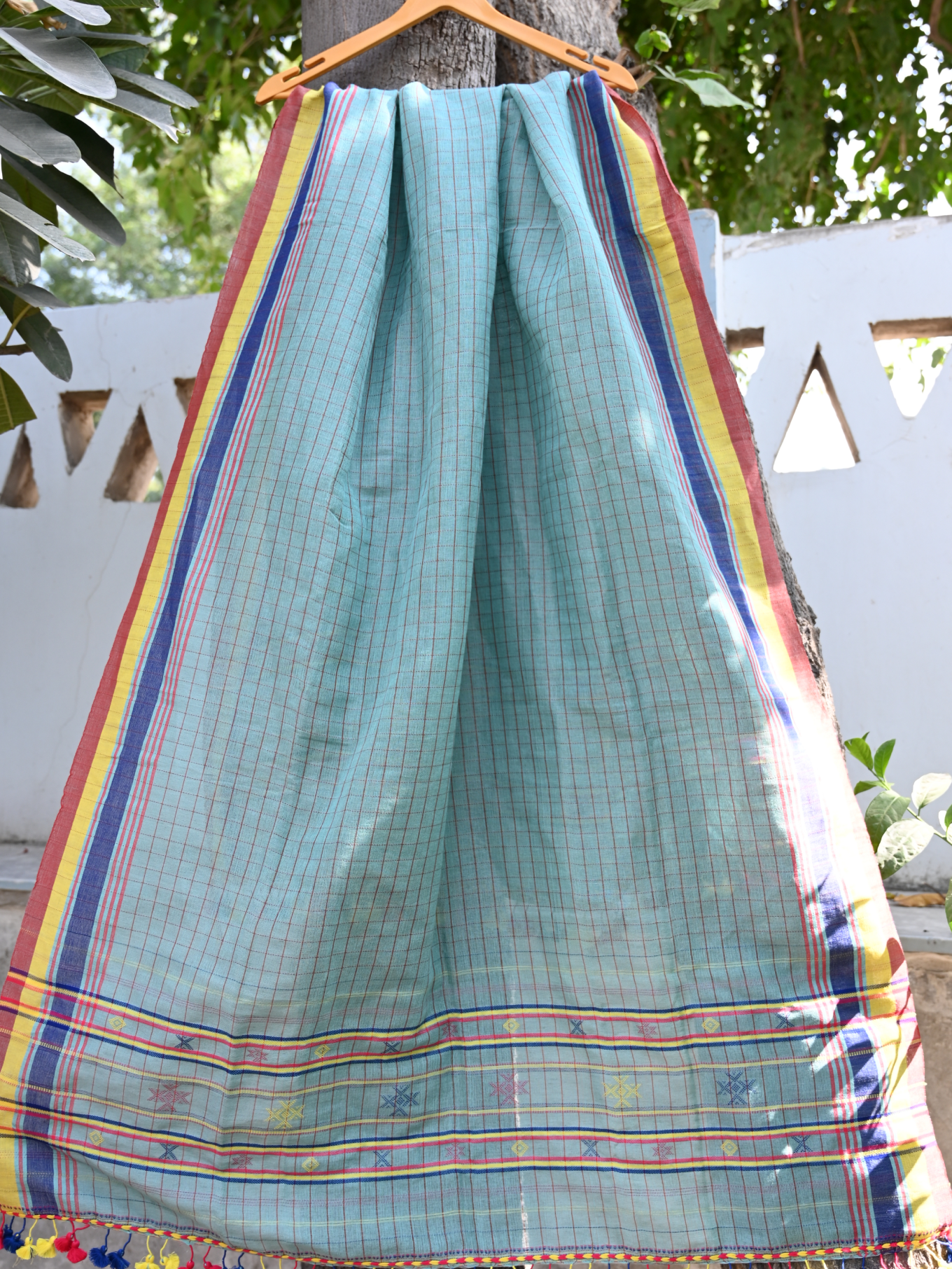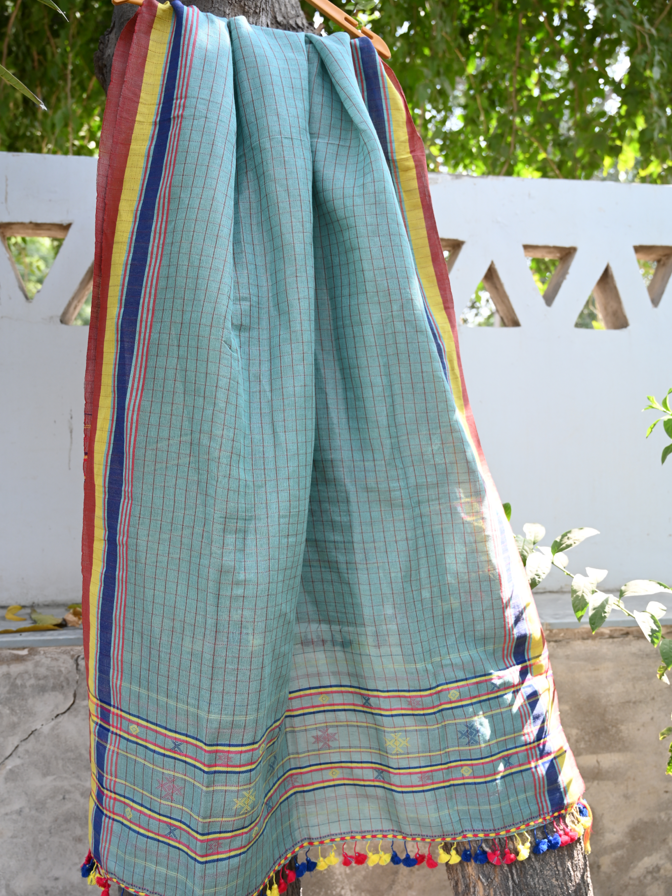 Elevate your look with our Kala Cotton Dupatta in a serene light sky blue hue. Handwoven with care, this eco-friendly and lightweight dupatta exudes effortless elegance, perfect for any occasion.