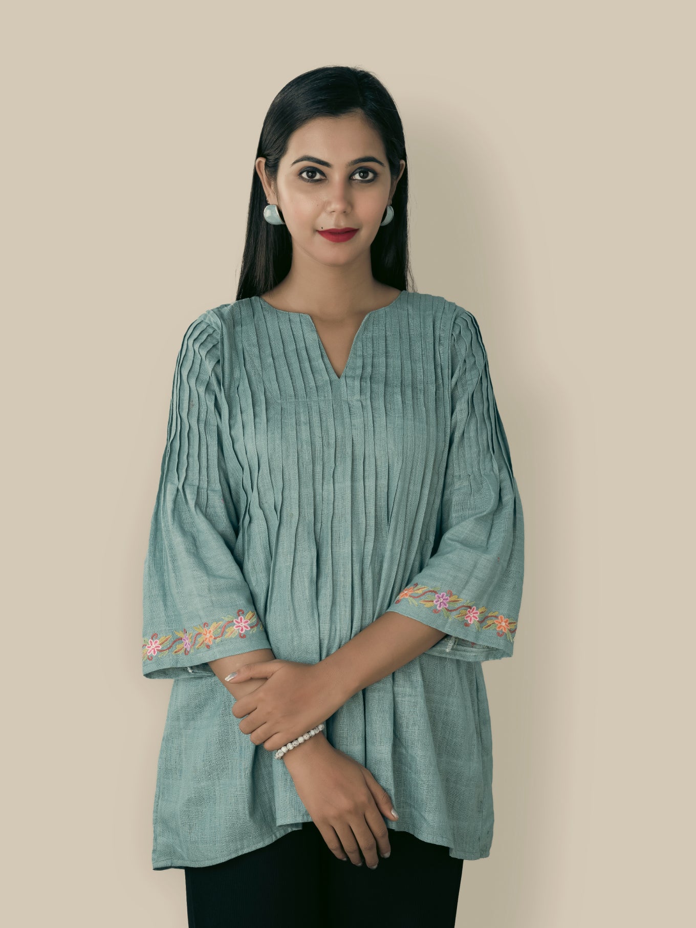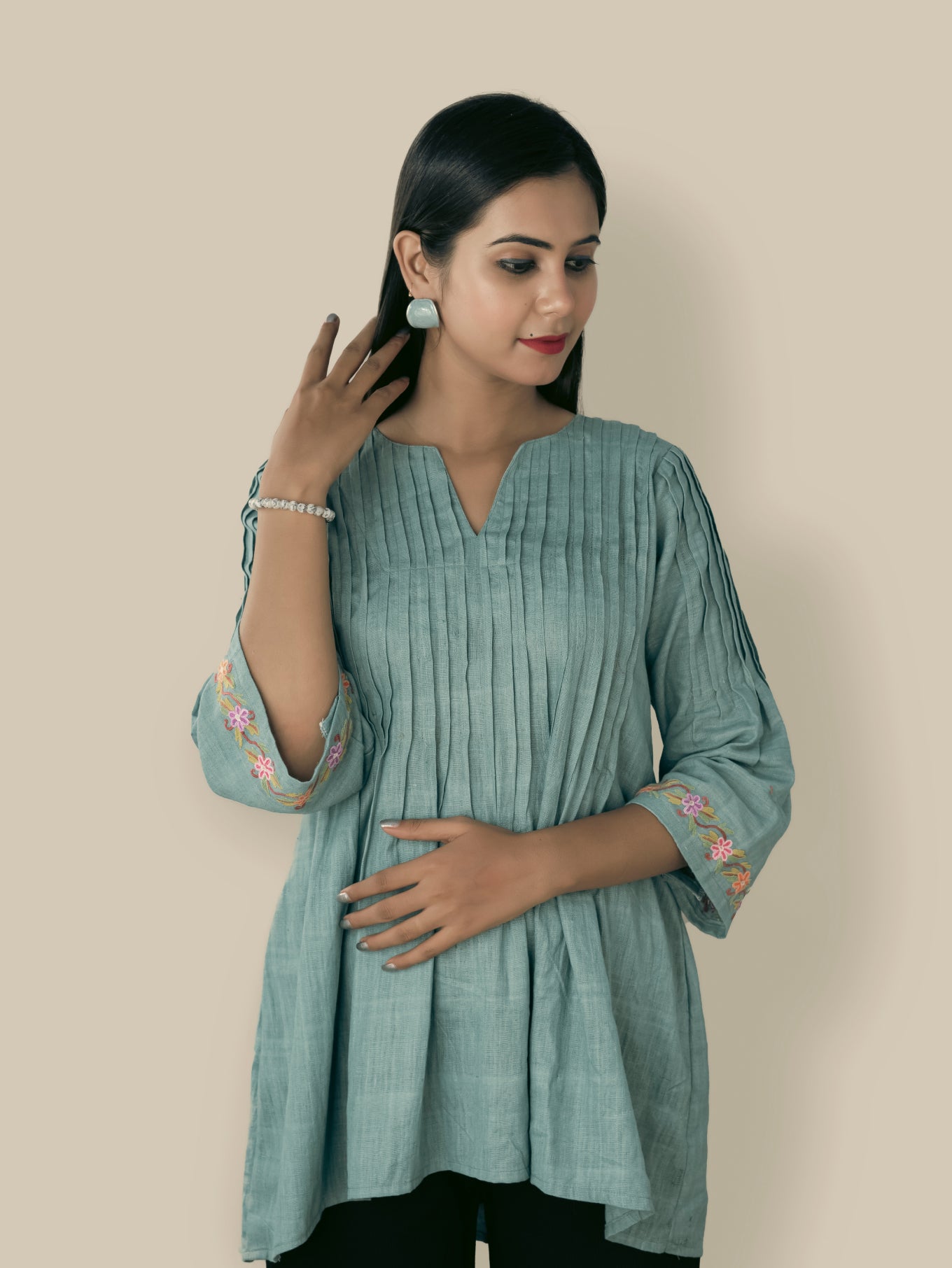 The perfect fusion of Kashmiri hand embroidery and nature’s grace, showcased on beautifully handwoven fabrics