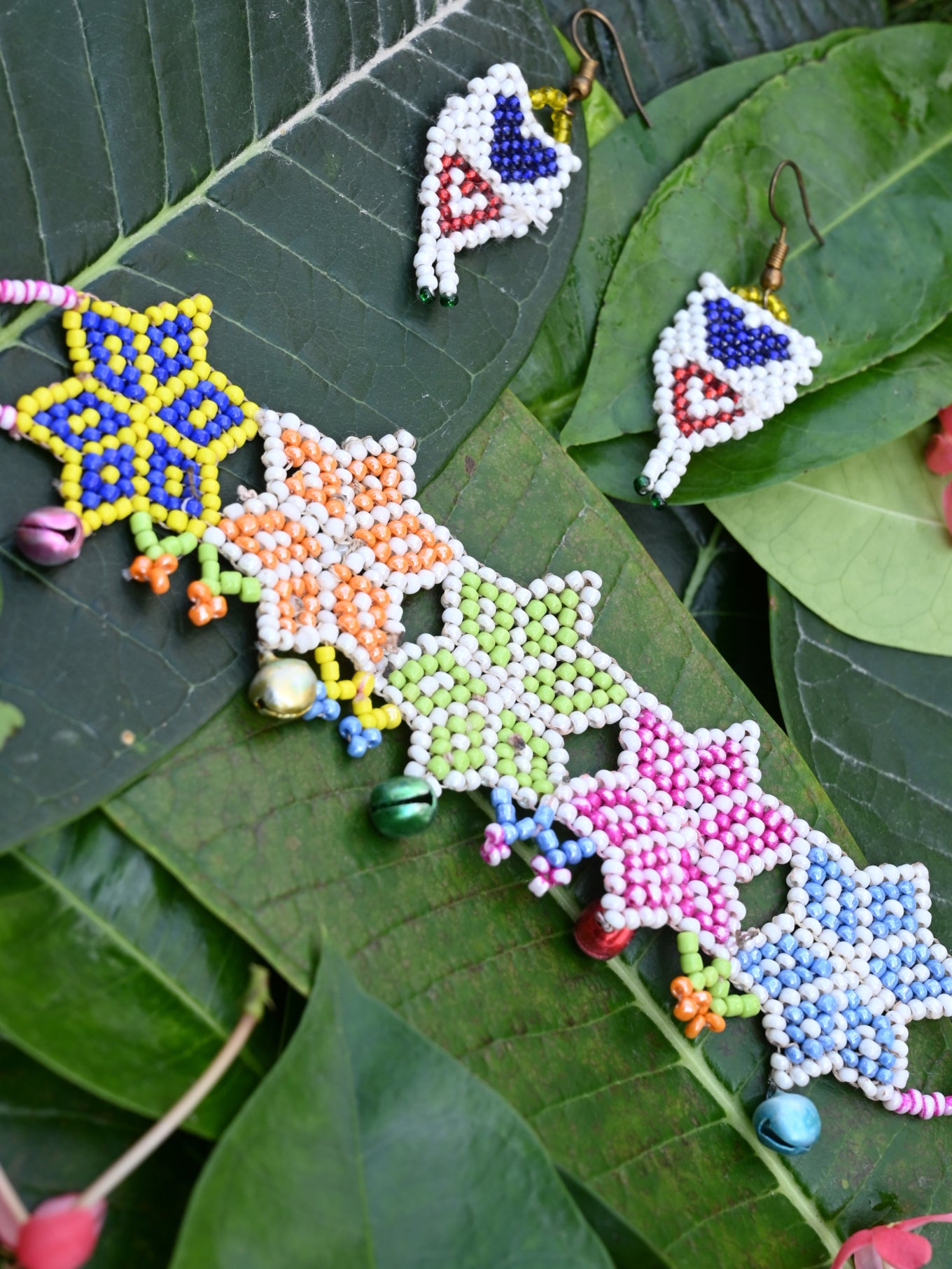 Our Kutch handcrafted bead neckpiece and earring sets are made with intricate techniques passed down through generations. Each piece tells a unique story of Kutch's rich artistic traditions, with beads that reflect the culture’s vivid colors and patterns.
