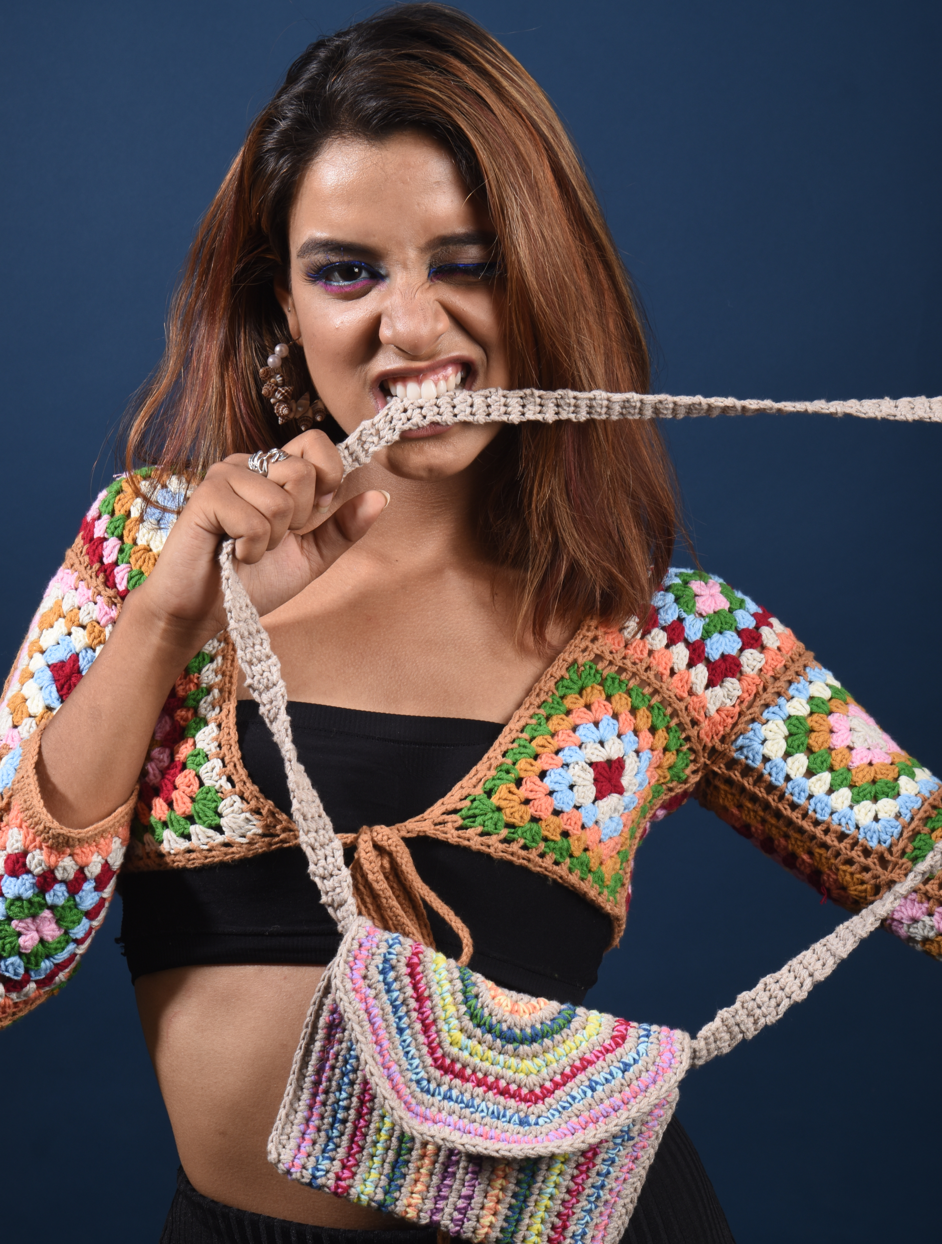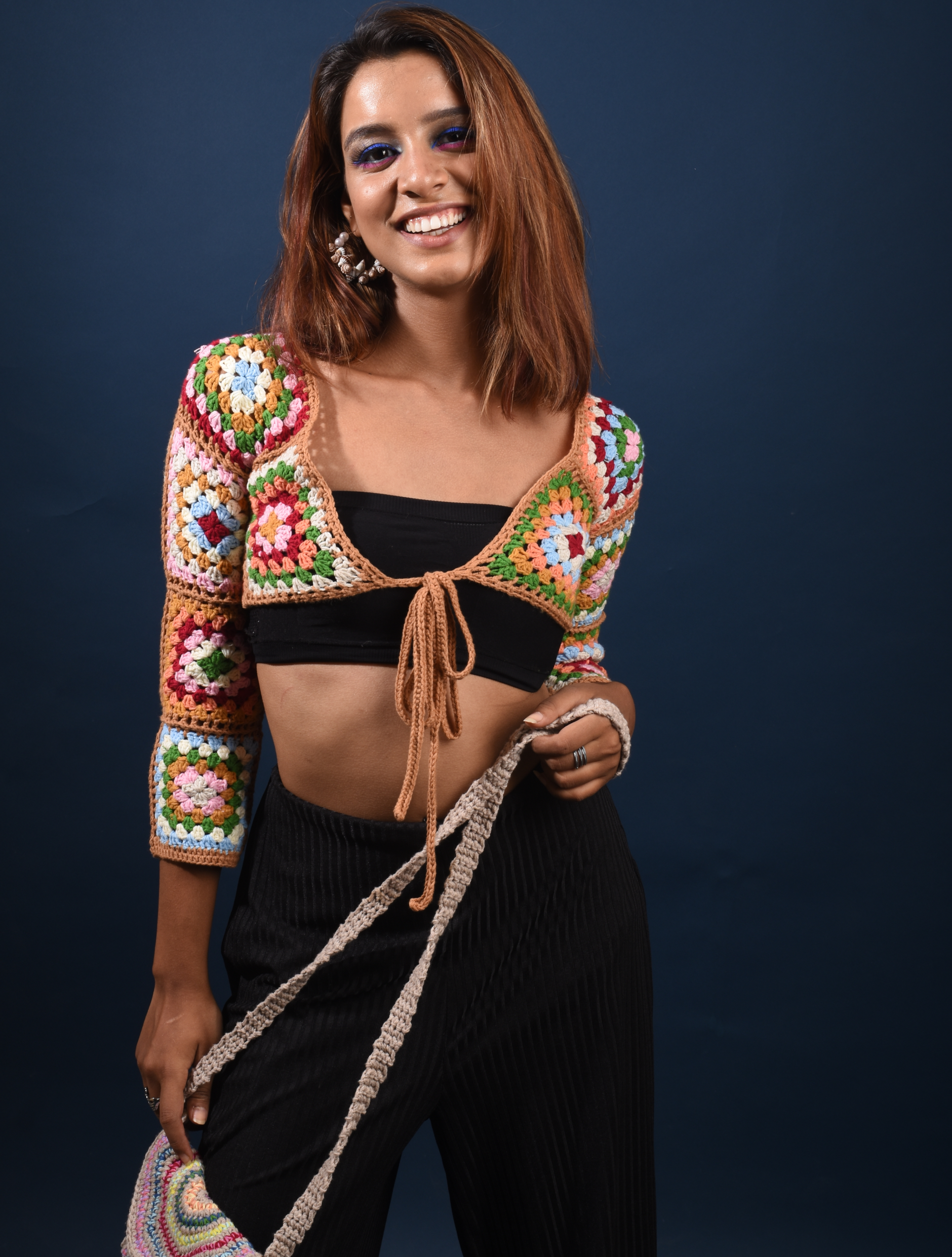 Bursting with color and craftsmanship, this crochet shrug adds a vibrant twist to any outfit.