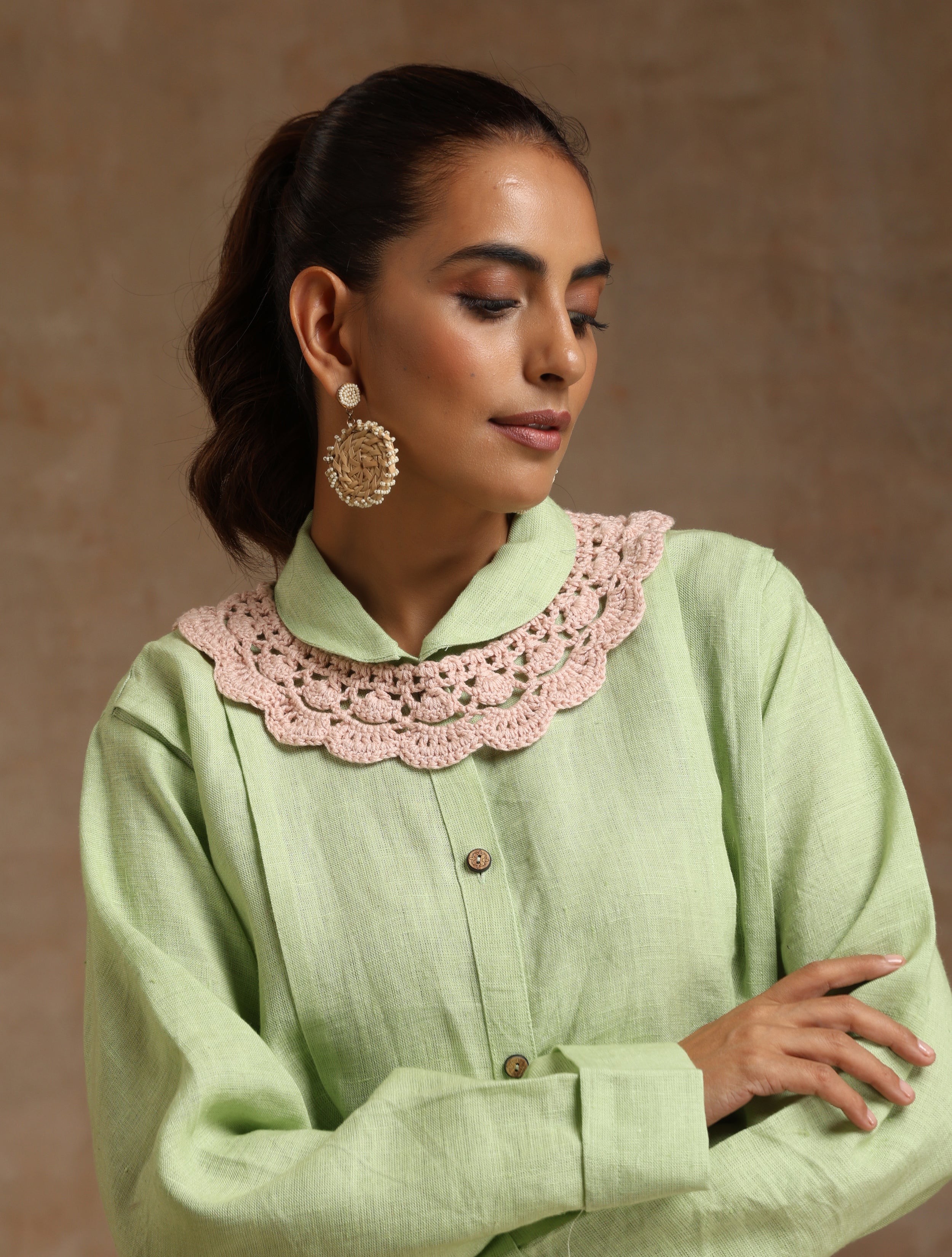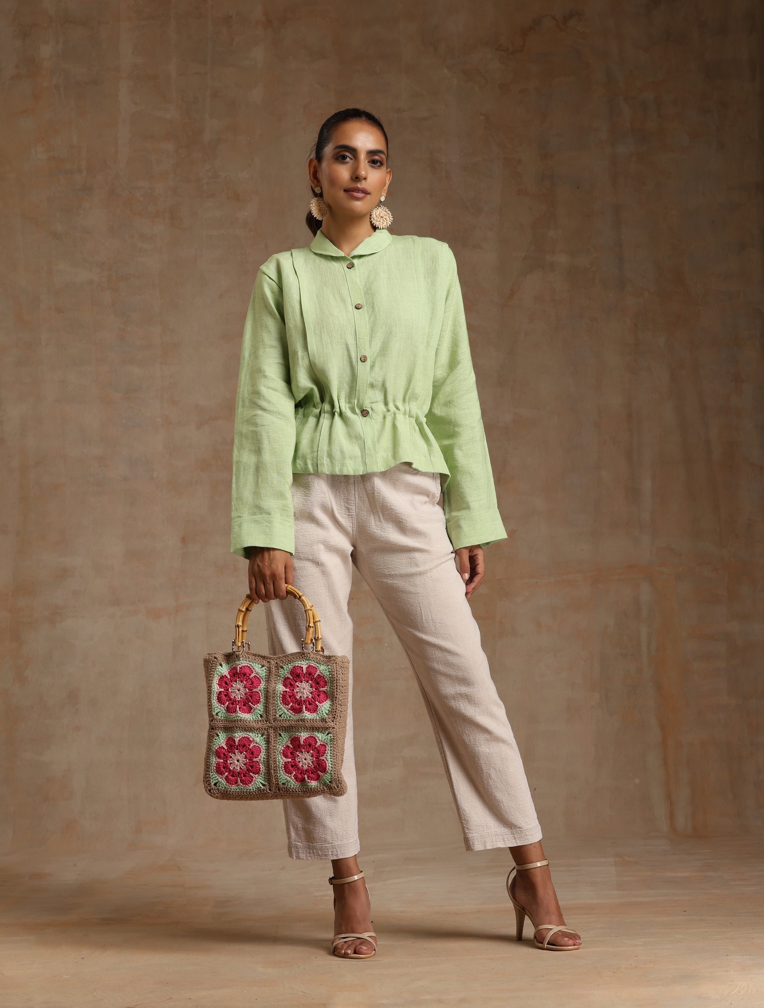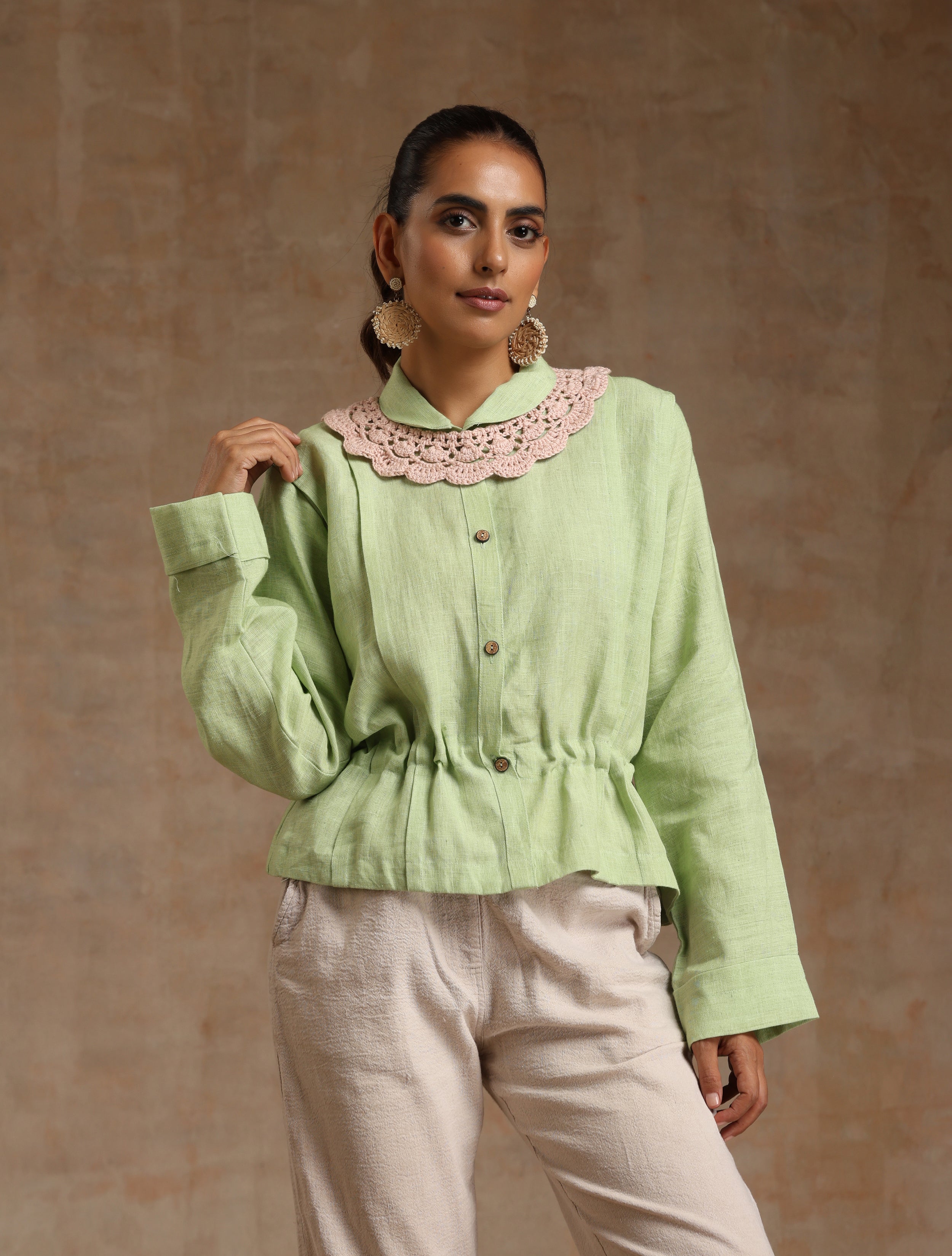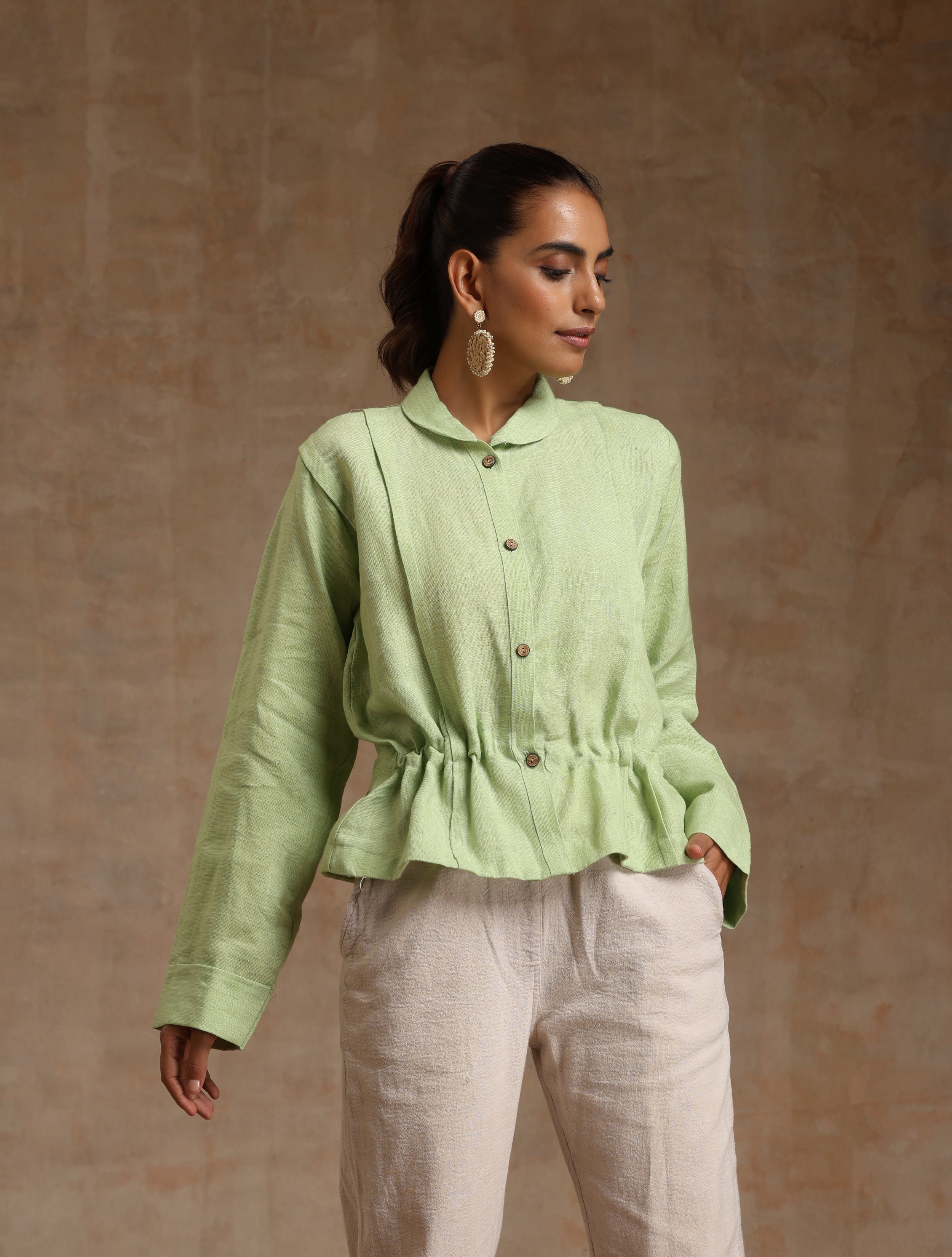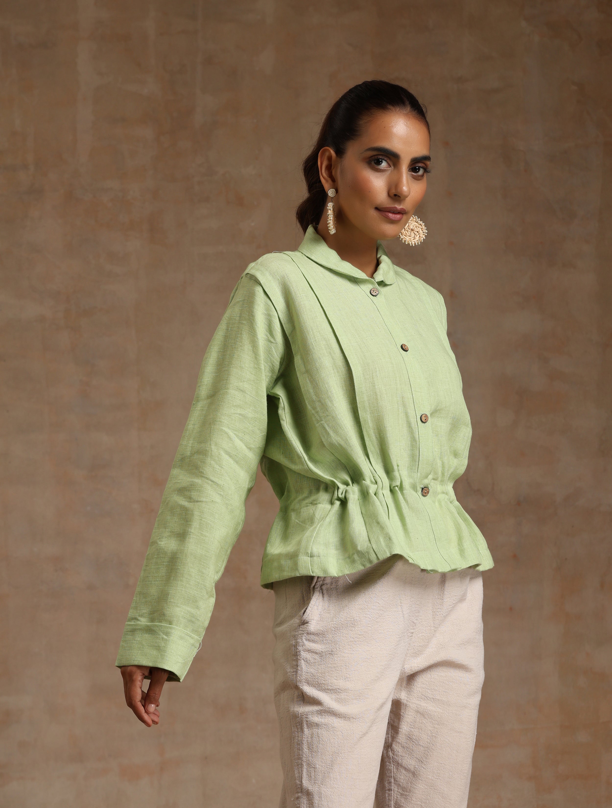 The mint green Linen top